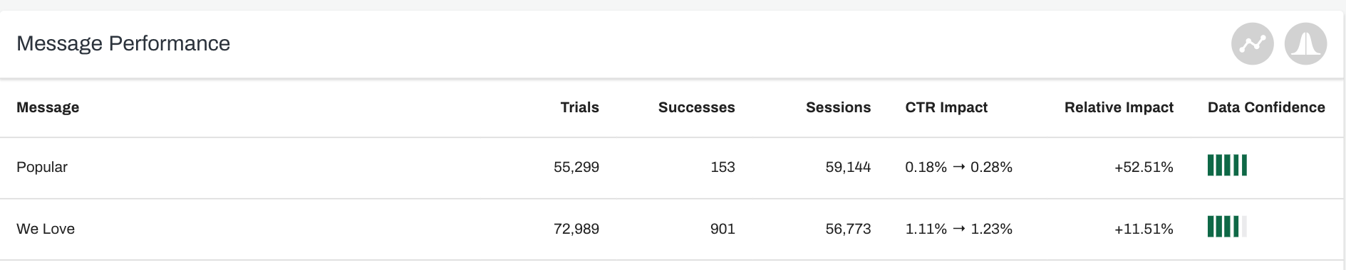 Data Confidence measures the trustworthiness of the results from our experiments. This is an important metric that determines the likelihood that the impact of your experiment is accurate and not caused by random chance. To test the data confidence yourselves, try the A/B Test Calculator.