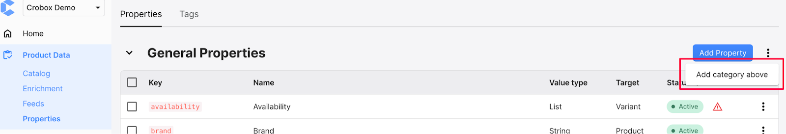 Within this article, you will find how to organize your product data efficiently by creating and managing property categories.